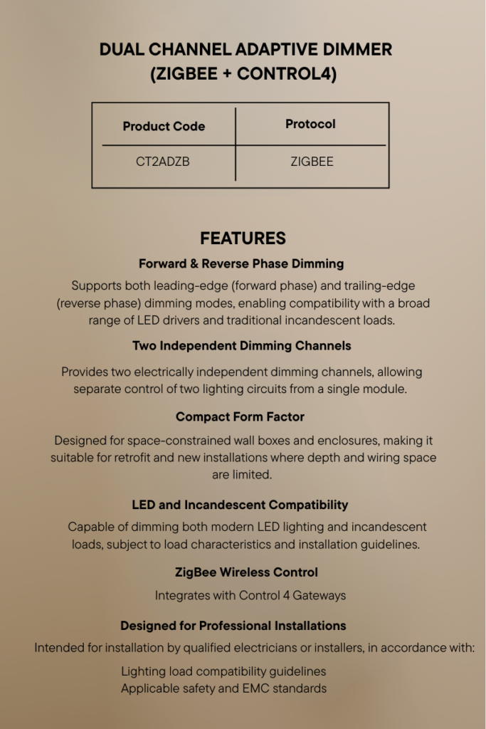 Dual Channel Adaptive Dimmer (Zigbee + Control4)